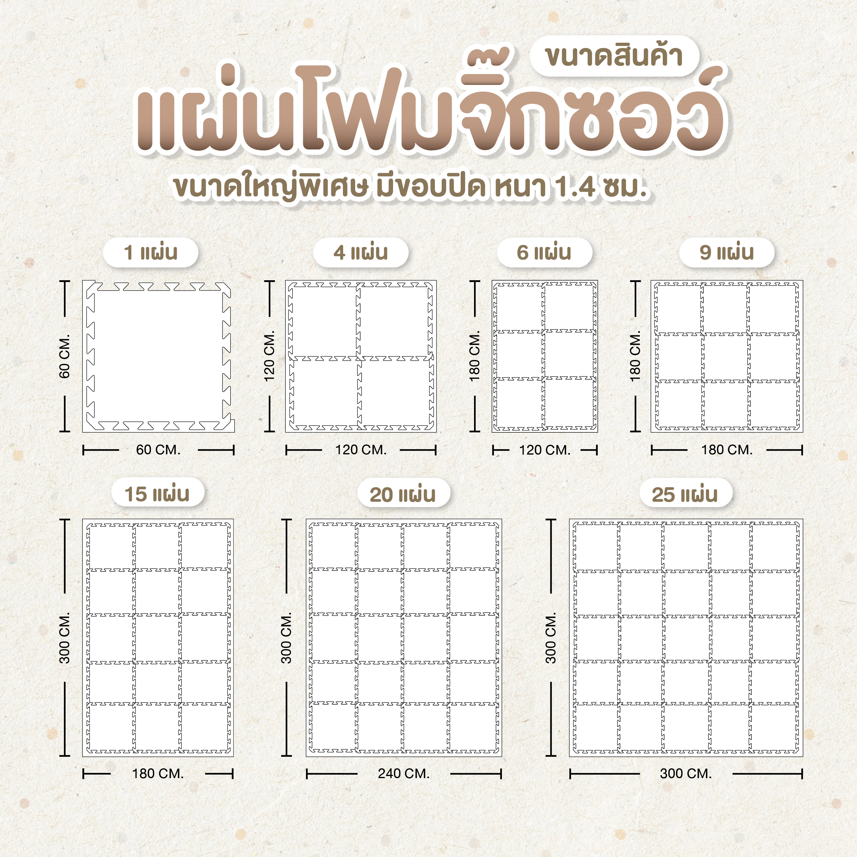 แผ่นรองคลาน จิ๊กซอว์ Mamamo แบ่งตามความหนาได้ 3 แบบ ดังนี้